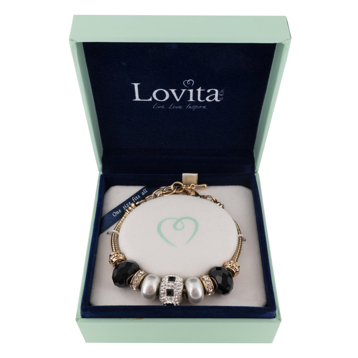 Lovita Charm Bracelet Gold Band Silver And Black Charm (Ex Display)