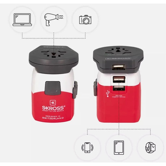 Conquer global adventures with our high-performance world adapter. Ideal for laptops and travel essentials, it features 3 USB ports for simultaneous charging. Swiss-designed, it accommodates earthed and unearthed plugs, offering versatility for all your devices.