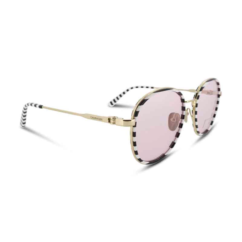 Calvin Klein Black & White Stripey Sunglasses feature adjustable silicone nose pads for enhanced comfort and style.