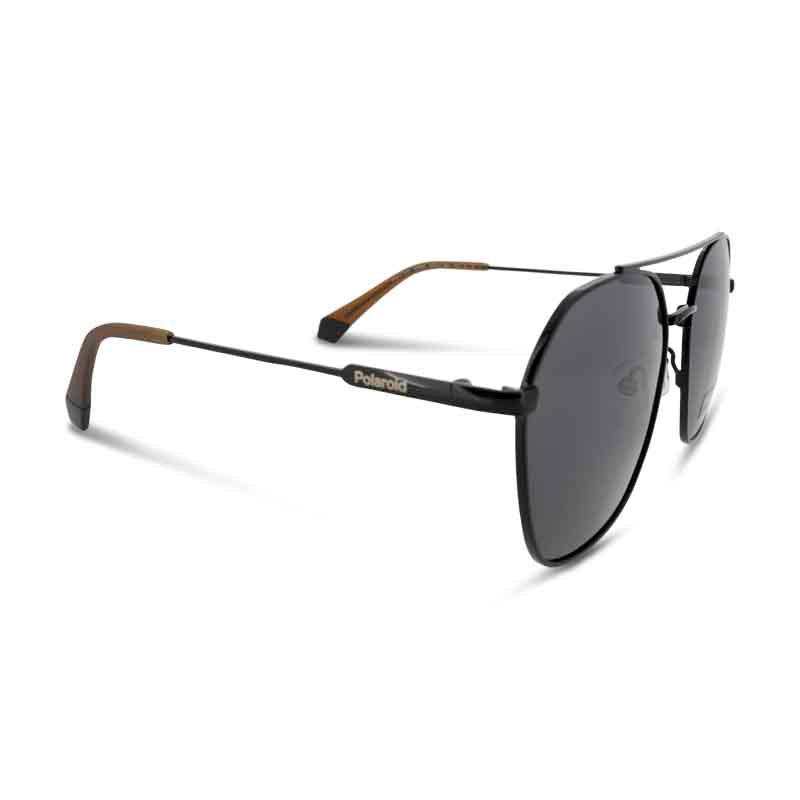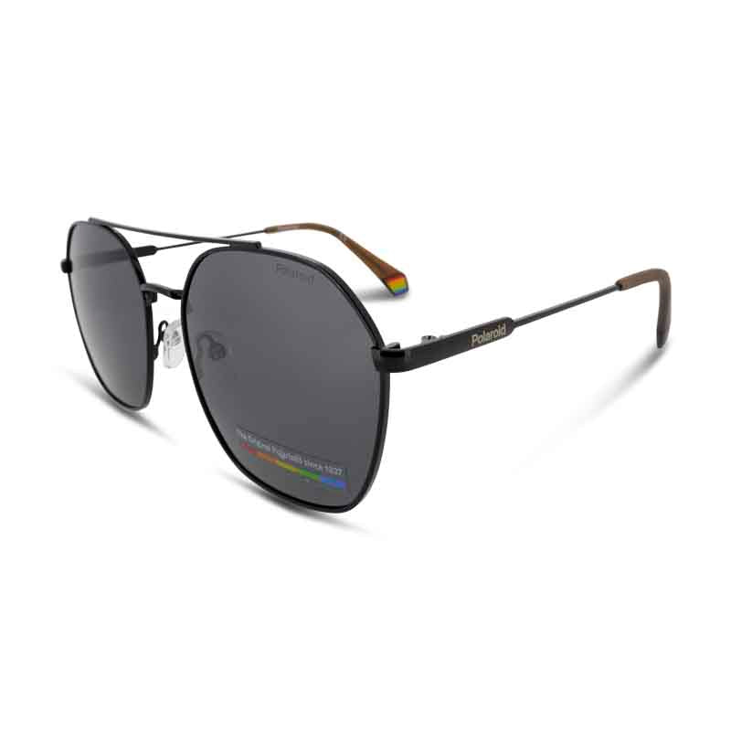 Polaroid Black Sunglasses with stainless steel pilot frame in black feature a full-rim design.