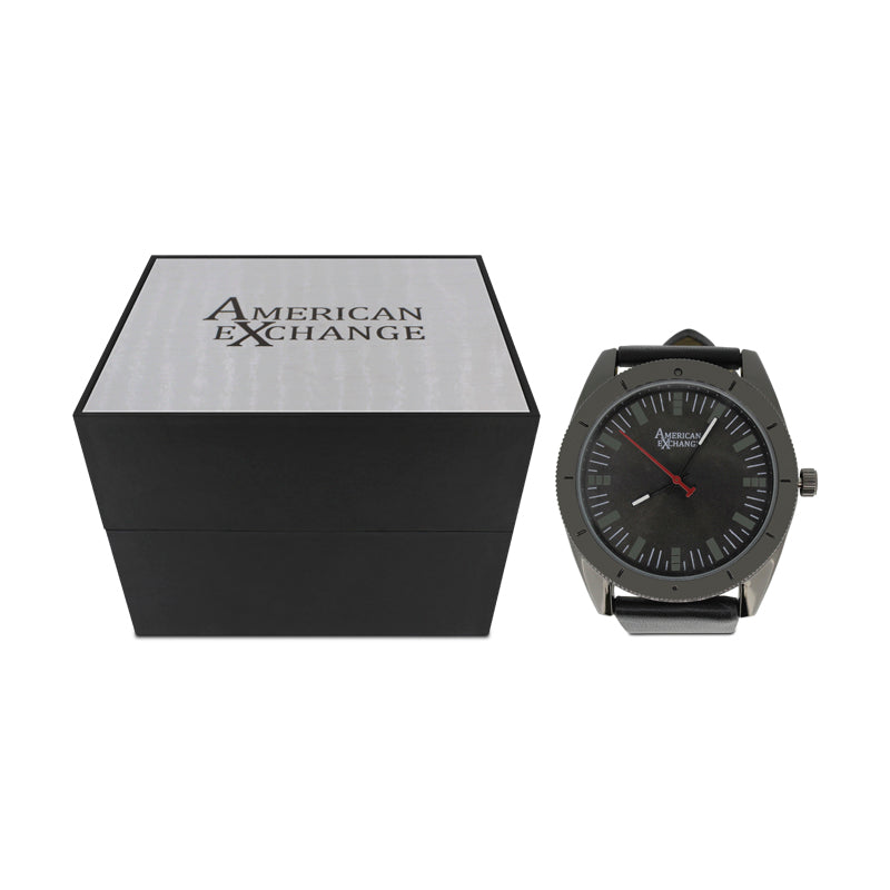 The American Exchange Black Mens Watch 5218 embodies style and fashion. This must-have accessory has a durable black leather strap which gives a comfortable experience even after extended wear.