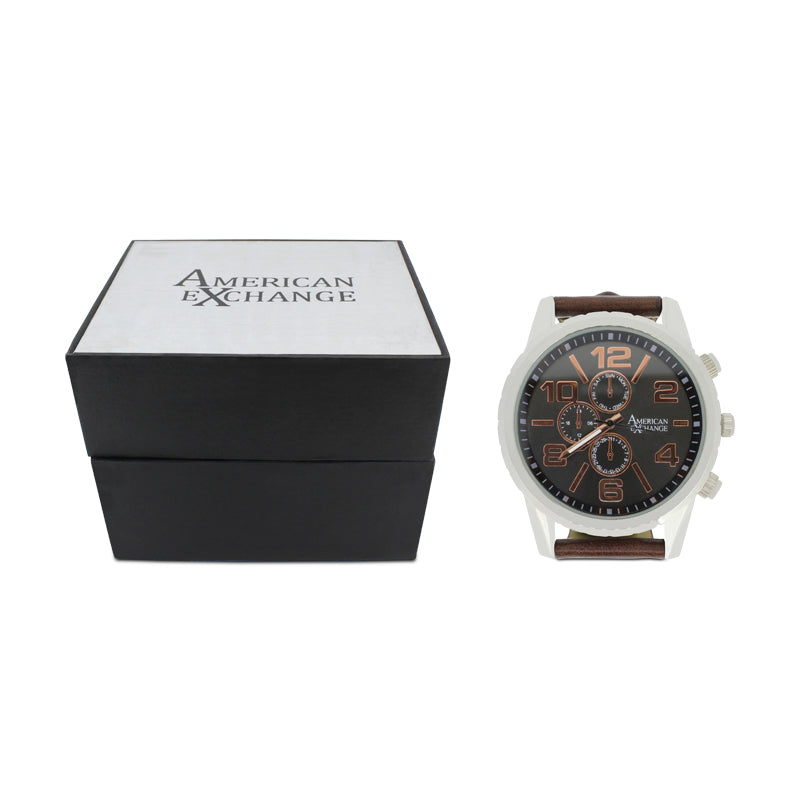 American Exchange Silver Watch with Brown Strap and Bracelets Set 5130