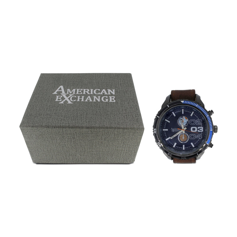 American Exchange Leather Watch 5336 is a super stylish accessory. Having a striking blue dial, it includes navy and back interchangeable straps.