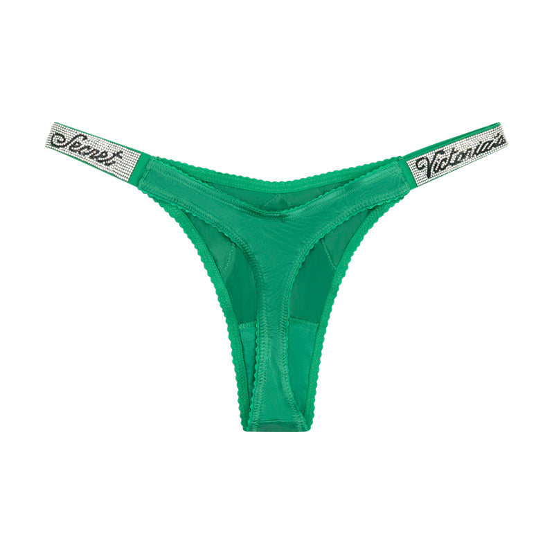 Experience elegance and comfort with Victoria's Secret Shine Strap Lace Green Thong. This stunning piece effortlessly combines a touch of luxe with a hint of playfulness, perfect for any occasion. The exquisite lace detailing delicately enhances the feminine silhouette while offering the ideal blend of chic and comfort. With options to suit every body type, find the perfect fit in our wide size variation.
