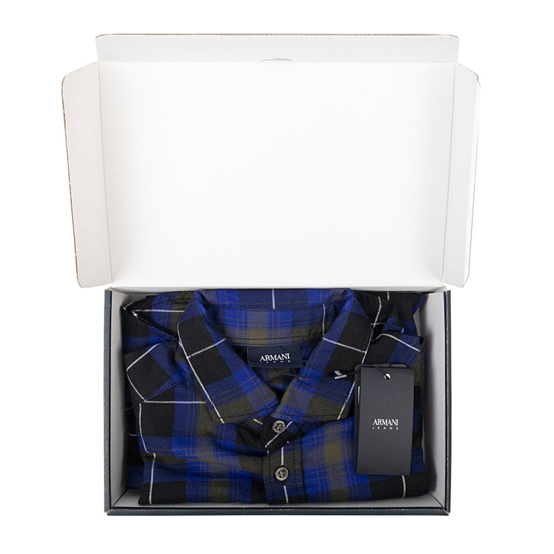 Step into style with the Armani Men's Blue & Black Check Shirt, available in size small. This piece marries sophistication and comfort, making it a versatile addition to any wardrobe. The classic check pattern seamlessly blends navy blue with black, ensuring a distinct yet understated look suitable for any occasion. Crafted with premium fabric, this shirt offers both durability and softness, keeping you comfortable all day long.