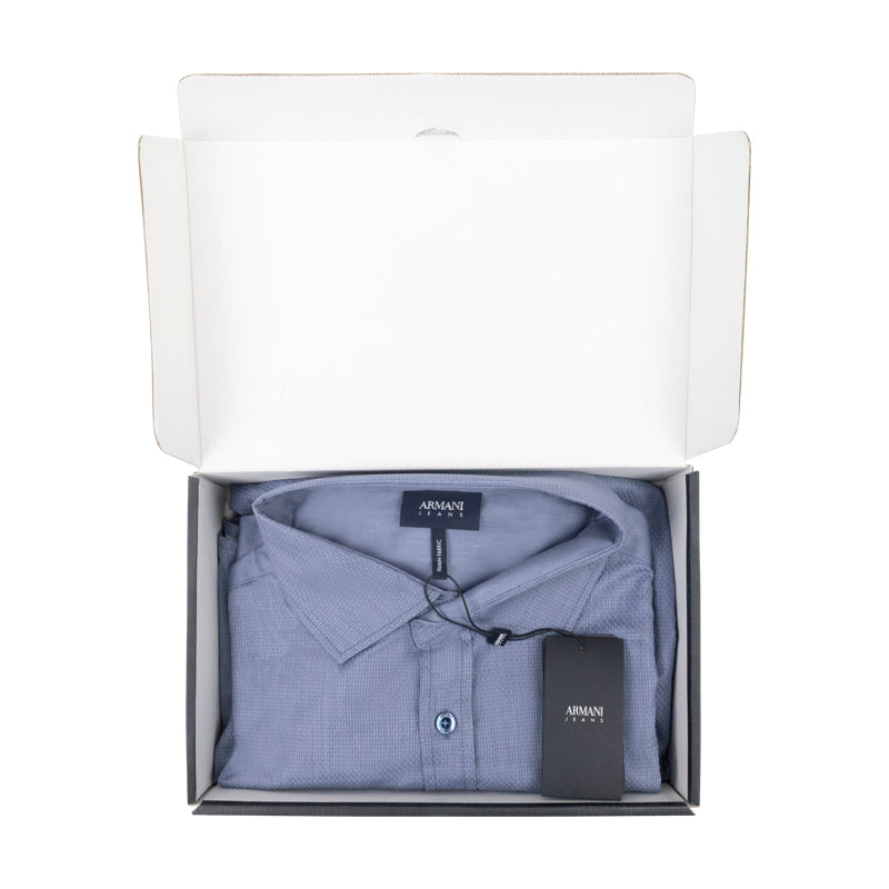 Step up your style game with the Armani Men's Blue Shirt, designed specifically in XX Large for ultimate comfort and sophistication. This designer shirt from Armani seamlessly blends contemporary fashion with timeless appeal, making it an essential addition to any man's wardrobe.