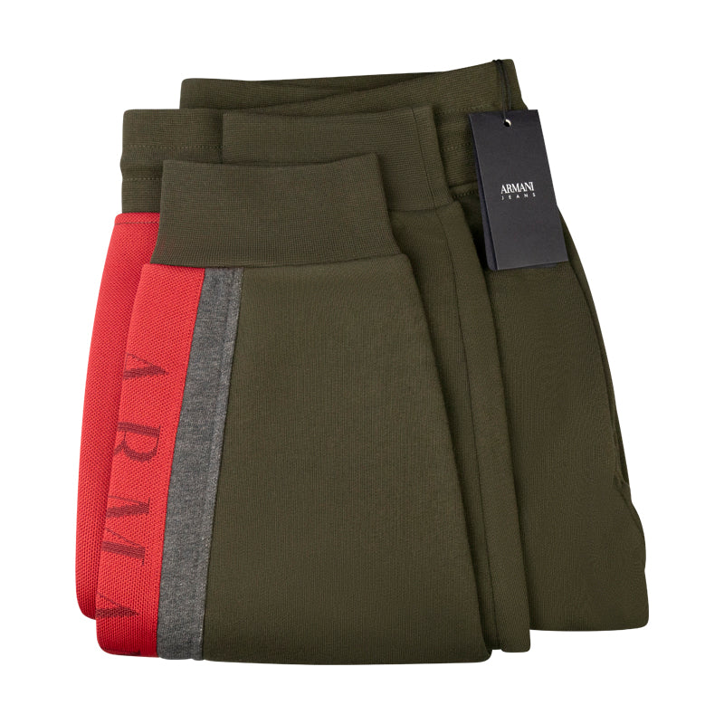 Slip into style with the Armani Men's Green & Red Tracksuit Bottoms. These tracksuit bottoms combine sleek design with comfort, perfect for a relaxed day out or an intense workout session. Their striking green and red colourway sets you apart, making a bold fashion statement.