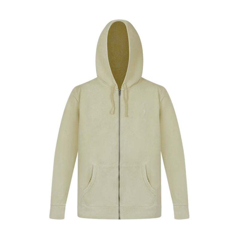 Made from a luxurious cotton blend, it promises softness and warmth, ideal for those cooler mornings or laid-back evenings. The sleek zip-up design allows for easy wear, while the iconic Polo logo embroidery delivers a subtle yet stylish statement .Its fresh tan hue adds a seasonal flair, making it an essential for the fashion-conscious gentleman.