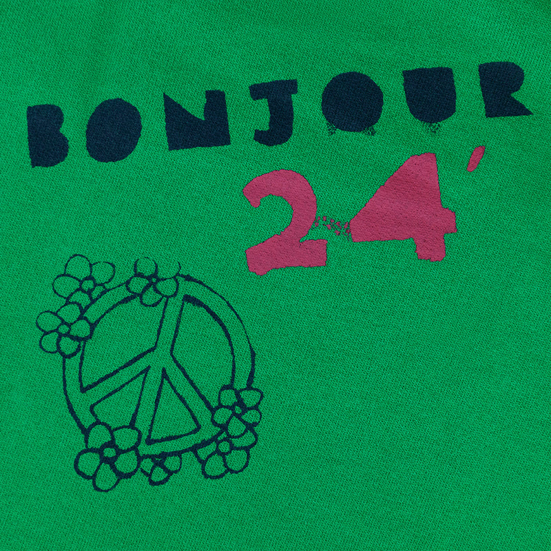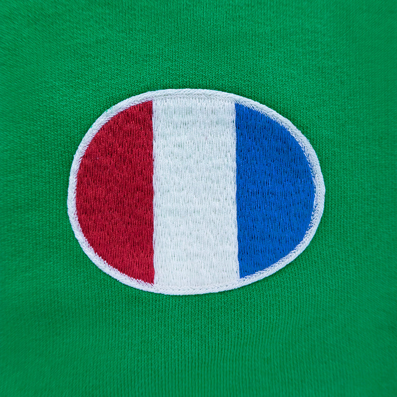 Embrace the essence of Paris with the Ralph Lauren Polo Love Peace Paris Sweatshirt in green. Crafted from a comfortable cotton-blend, this sweatshirt captures the spirit of the season’s Parisian-inspired theme. Its vibrant graphics, including “Polo Forever” in French, add a creative flair to your wardrobe.