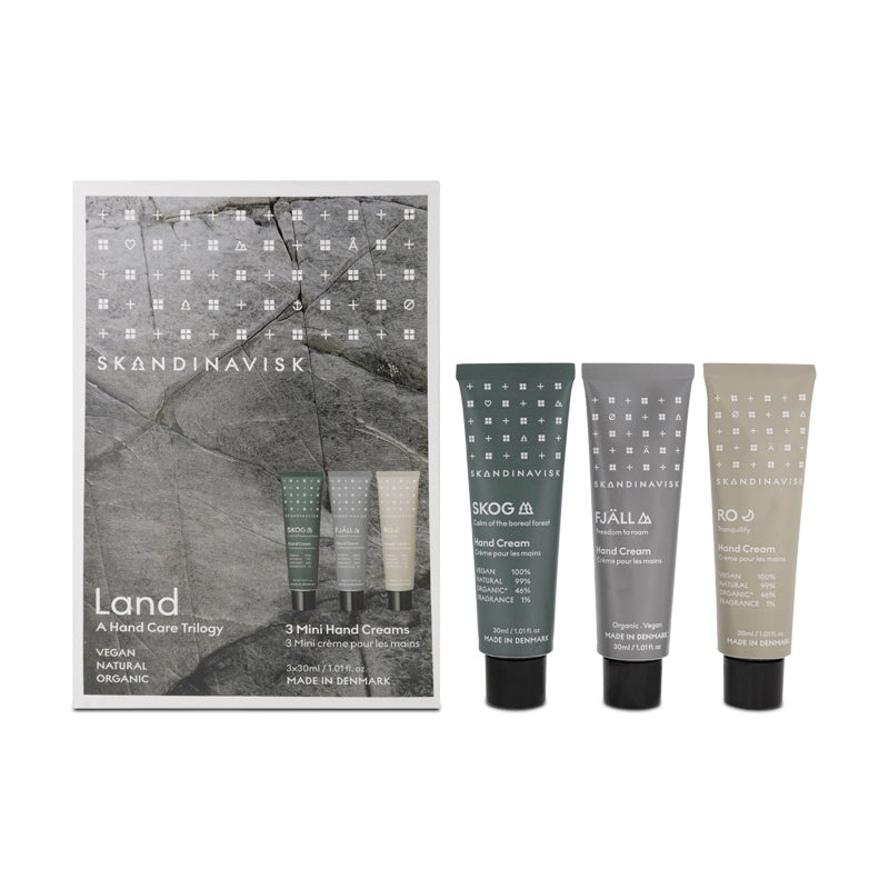 Experience the luxurious essence of Scandinavia with the Skandinavisk Land Mini Hand Cream Set. Perfectly capturing the spirit of Nordic seascapes, this collection provides a deeply hydrating and protective hand care experience. Each cream is vegan and crafted from natural ingredients, offering a soothing touch with refreshing Danish spring water. The formula is fast-absorbing and non-greasy, presented in eco-friendly, post-consumer recycled aluminium tubes for an environmentally conscious choice.