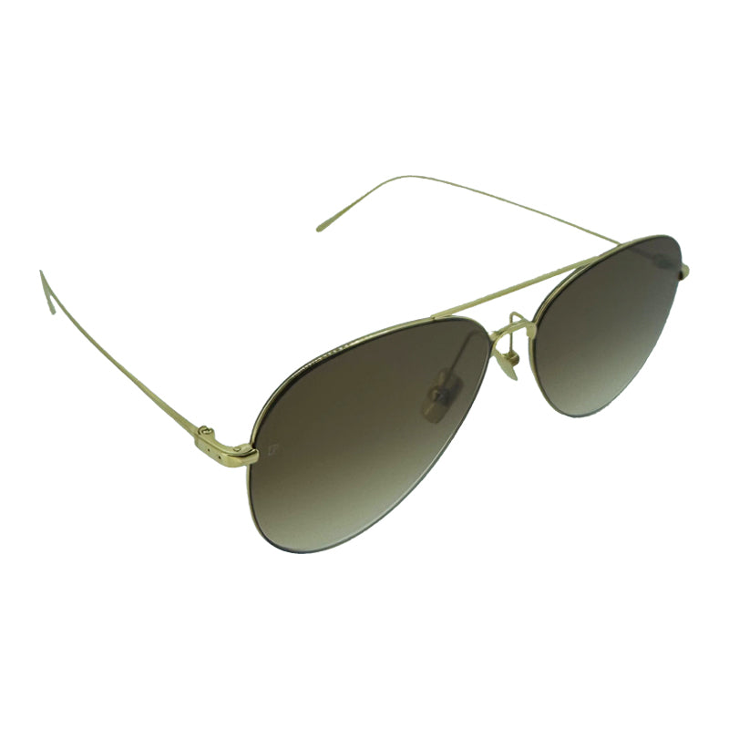 Linear aviator sunglasses from Linda Farrow. Minimalist design, lightweight fit. 22ct gold frame, brown ZEISS lenses for clarity. Adjustable nose pads for personalized comfort.