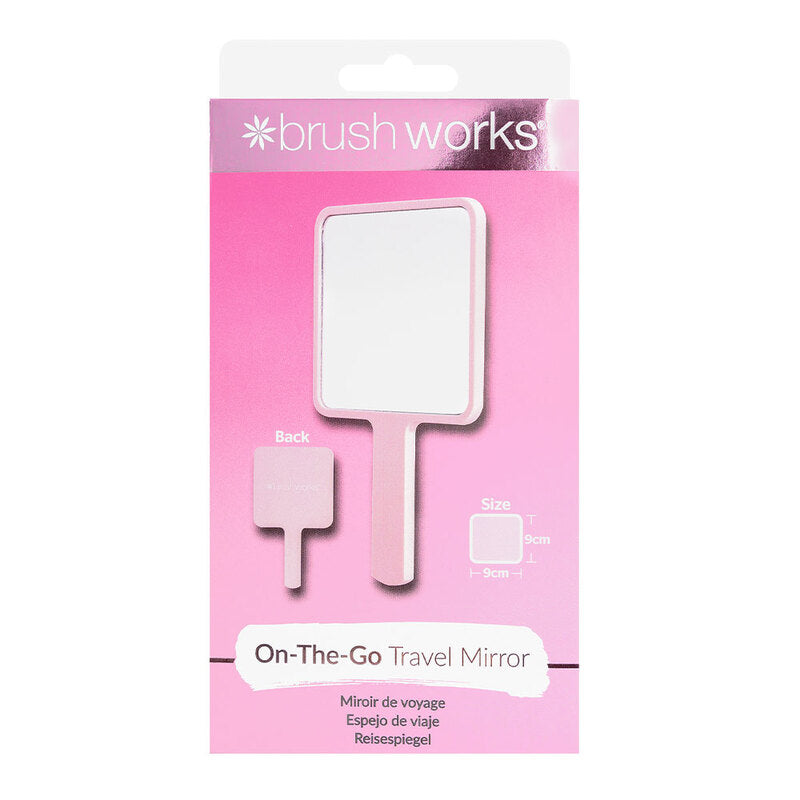 Brushworks On-The-Go Travel Mirror 9cm x 9cm - Pink