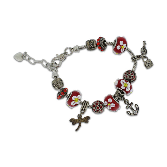 Khloelle Charm Bracelet Red Flowers and Anchor LC0070996