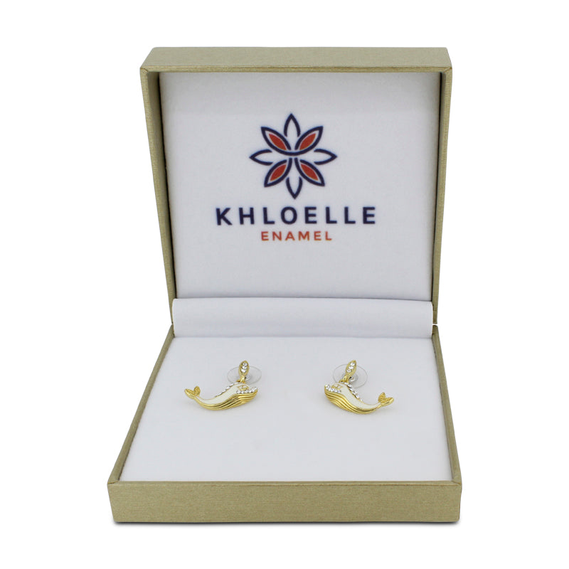 The Khloelle Earrings is a rare kind of jewellery that can elevate the overall appearance. These silver and gold earrings feature the motif of an elegantly crafted whale with little, shiny studs.
