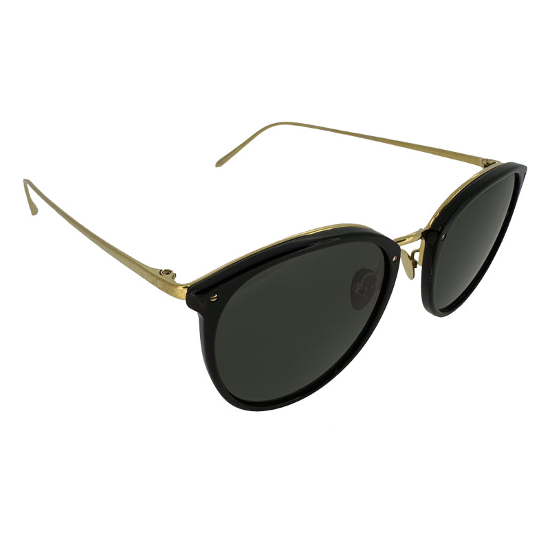 Unisex black oval sunglasses with grey lenses from Linda Farrow.