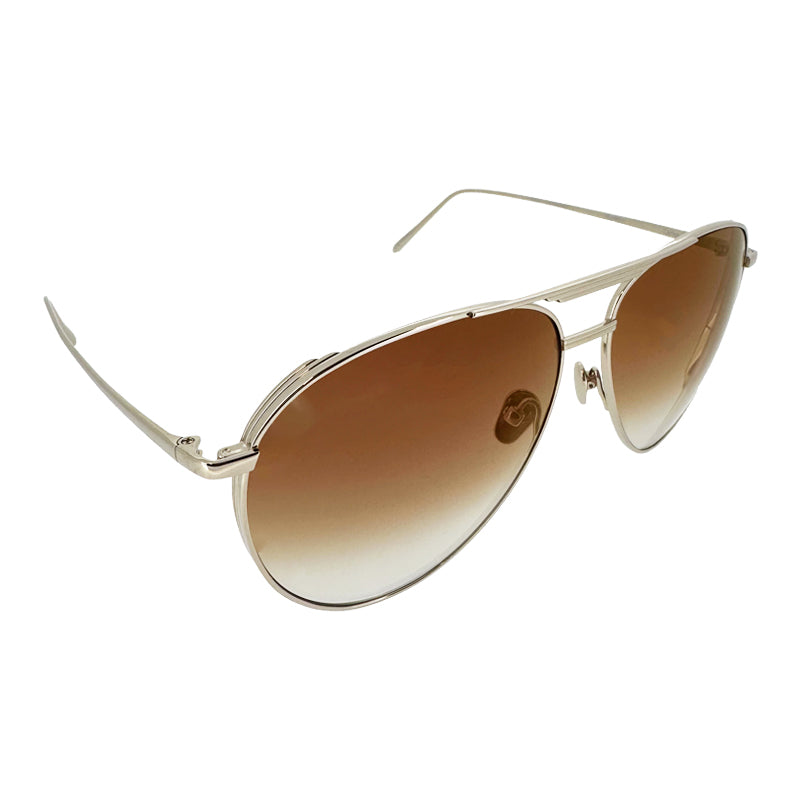 Aviator unisex sunglasses from Linda Farrow : Pure Japanese titanium. Elevated design. Art-deco inspired. Fine layers form delicate side shield.
