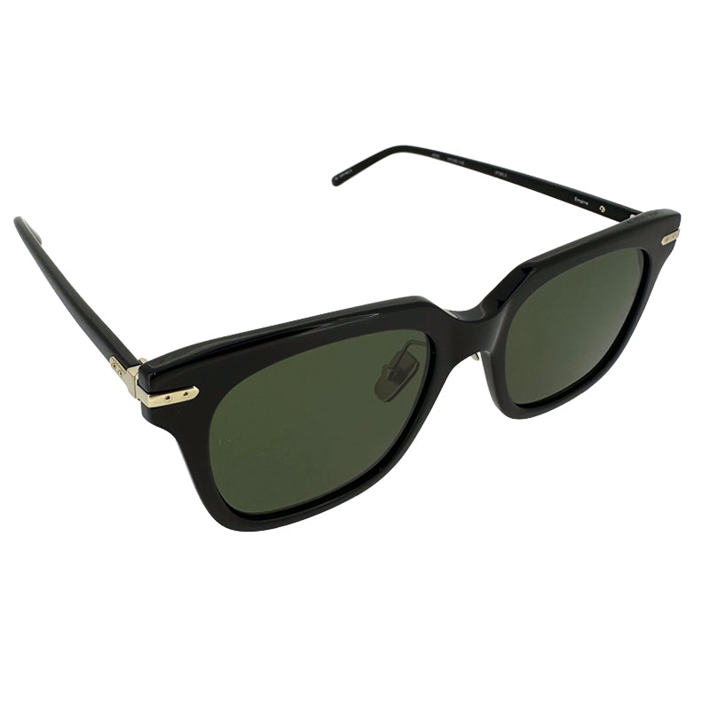D-Frame sunglasses: Classic black acetate. Solid grey ZEISS lenses for clarity. Custom titanium hinges, adjustable nose pads with 22ct gold plating.