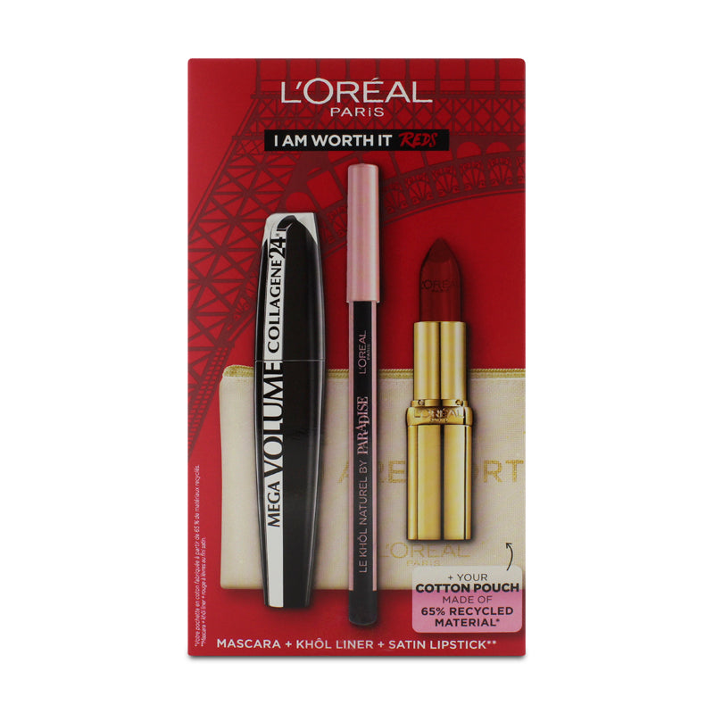 Made for a bold look, the L'Oreal I Am Worth It Reds Makeup Set is formulated for 24-hours wear. Enriched with collagen and intense pigment formula, the makeup kit is ideal for daily makeup routine.