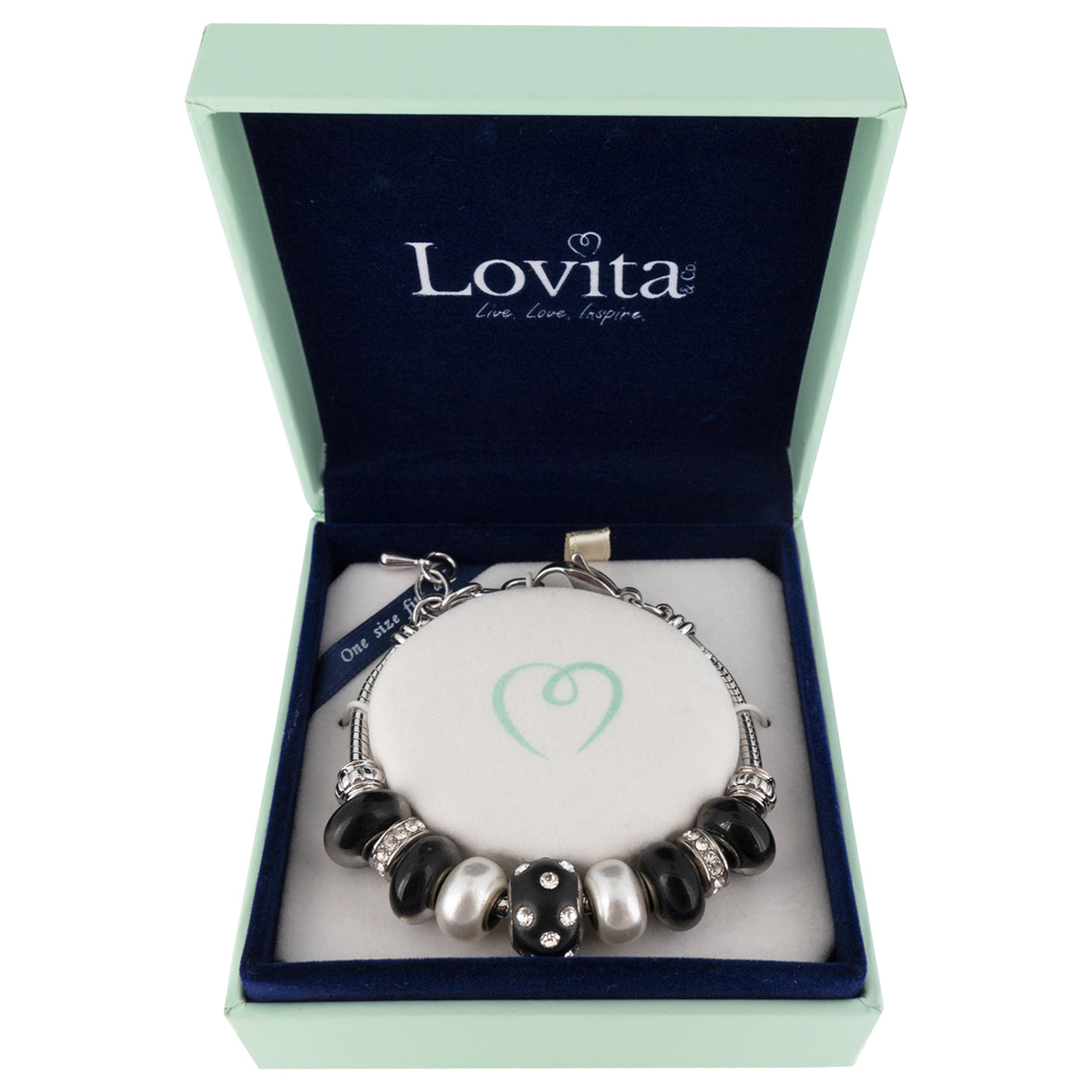 Lovita Charm Bracelet Silver Band Black and Silver CrystalsFree UK Delivery over £30