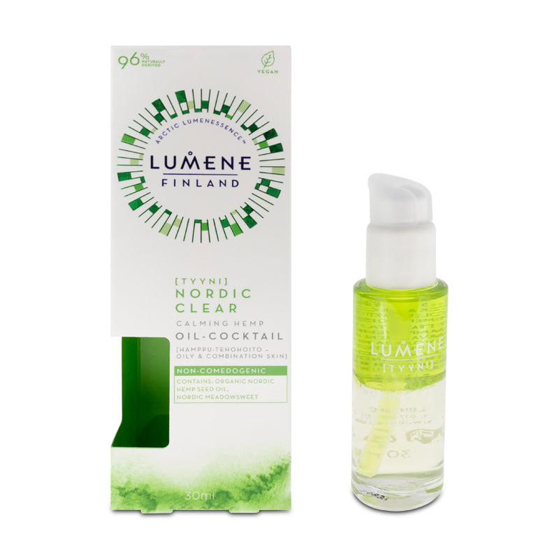 Lumene Nordic Clear Tyyni Calming Hemp Oil-Cocktail balances and soothes oily, combination, and blemish-prone skin.