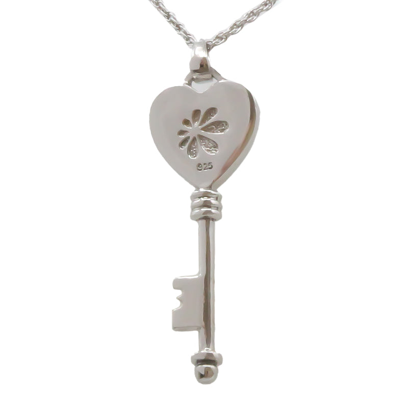 A beautifully detailed sterling silver heart key design, including a polished Larimar gemstone, a gentle and classic reminder of the cool Caribbean ocean breeze.