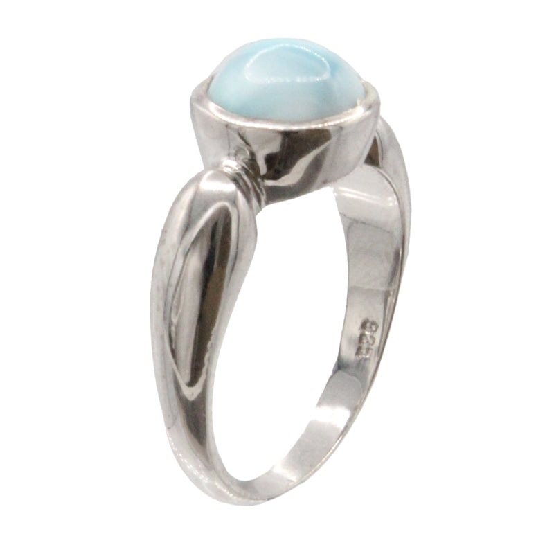 A rounded center of Larimar Stone is surrounded by an elegant sterling silver band. Simple yet breath taking.