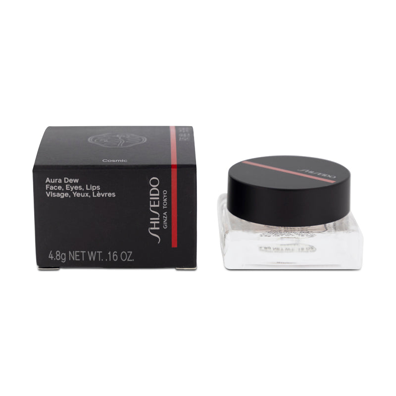 Enhance your beauty routine with the Shiseido Aura Dew Face Eyes Lips Highlighter 03 Cosmic. This captivating, multi-use highlighter offers a radiant, iridescent finish for every skin tone, making it a must-have in your beauty collection.