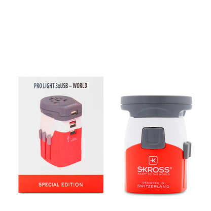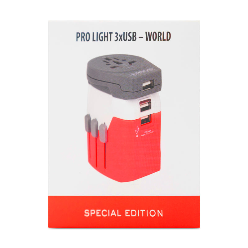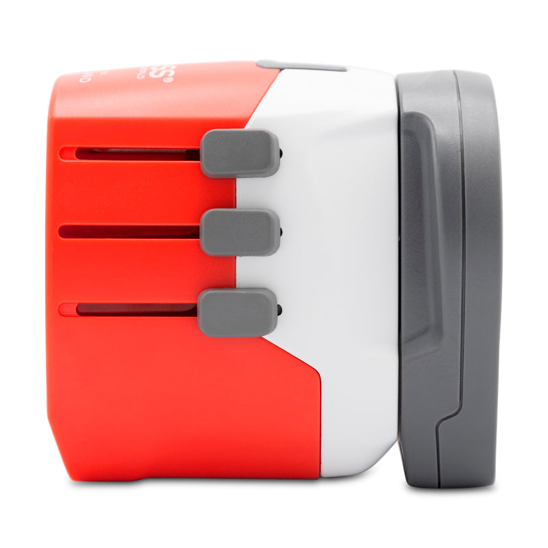 Conquer global adventures with our high-performance world adapter. Ideal for laptops and travel essentials, it features 3 USB ports for simultaneous charging. Swiss-designed, it accommodates earthed and unearthed plugs, offering versatility for all your devices.
