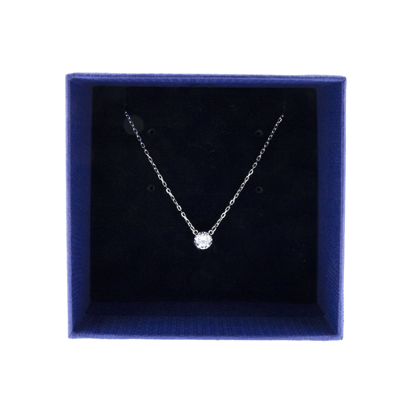 Plated in rhodium, this necklace boasts a radiant silver colour that complements the brilliance of the white stones. It’s a versatile accessory, perfect for both formal occasions and everyday wear. The 38cm length ensures it sits delicately on the neckline, adding subtle sophistication to any outfit.
