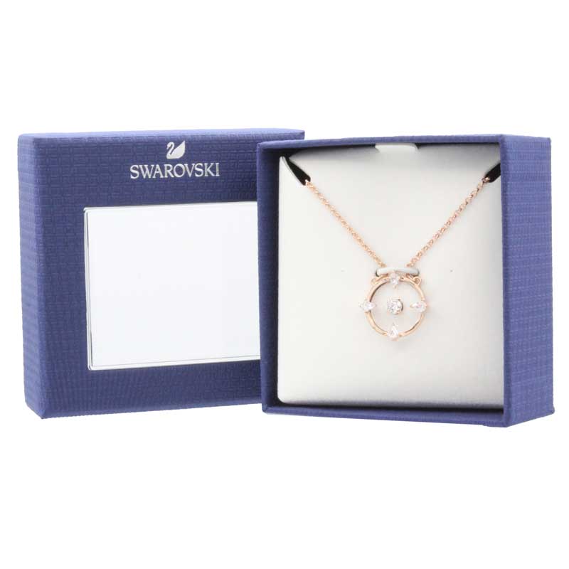Discover the elegance of the Swarovski North Collection Rose Gold Crystal Glass Necklace. Crafted to perfection, this exquisite piece features a disc adorned with a central crystal, elegantly floating for a touch of sophistication. Its rose gold tone gives it a modern, luxurious appeal that complements any outfit effortlessly.
